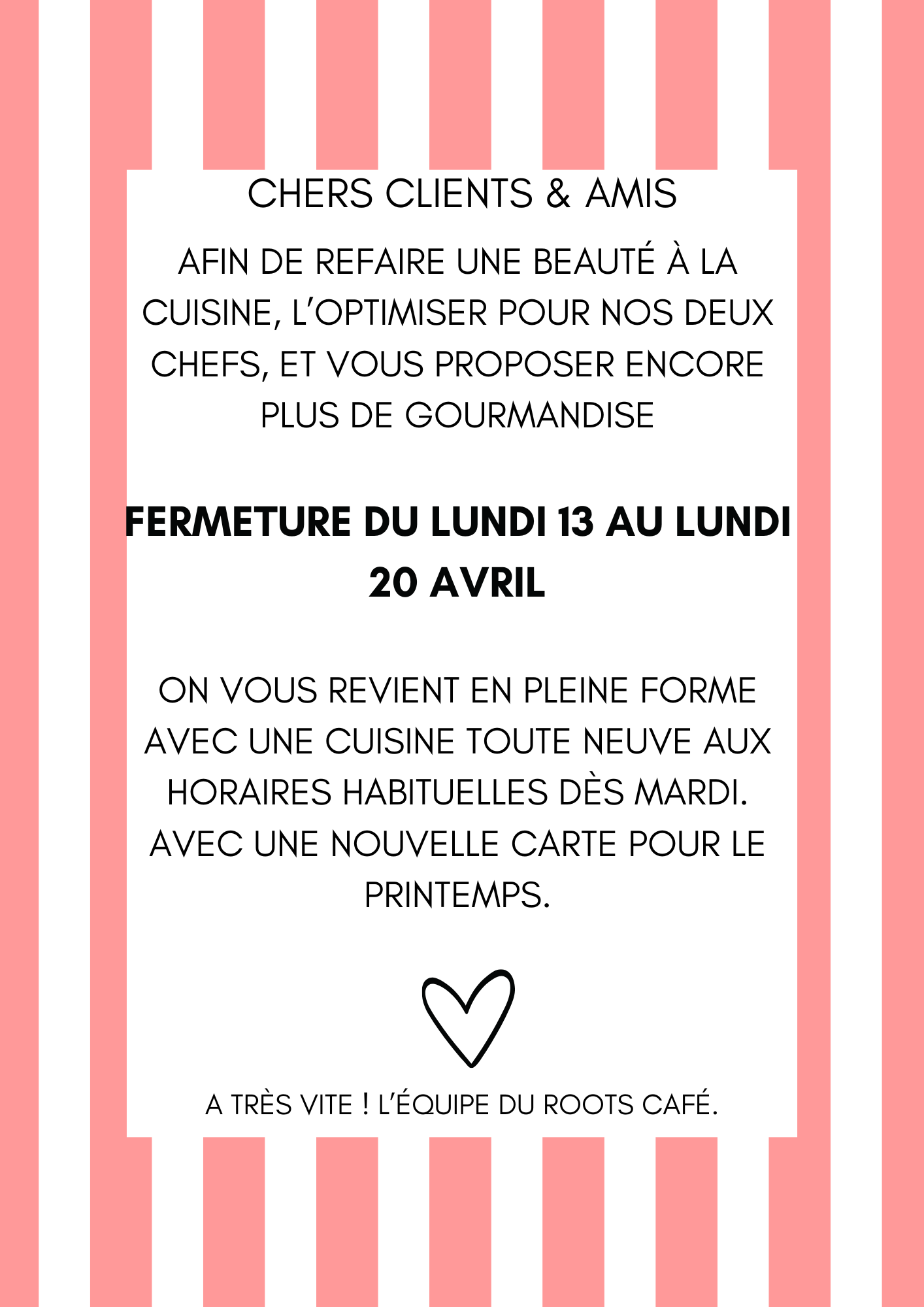 🌱 Fermeture du restaurant du lundi 13 au lundi 20 avril🌱