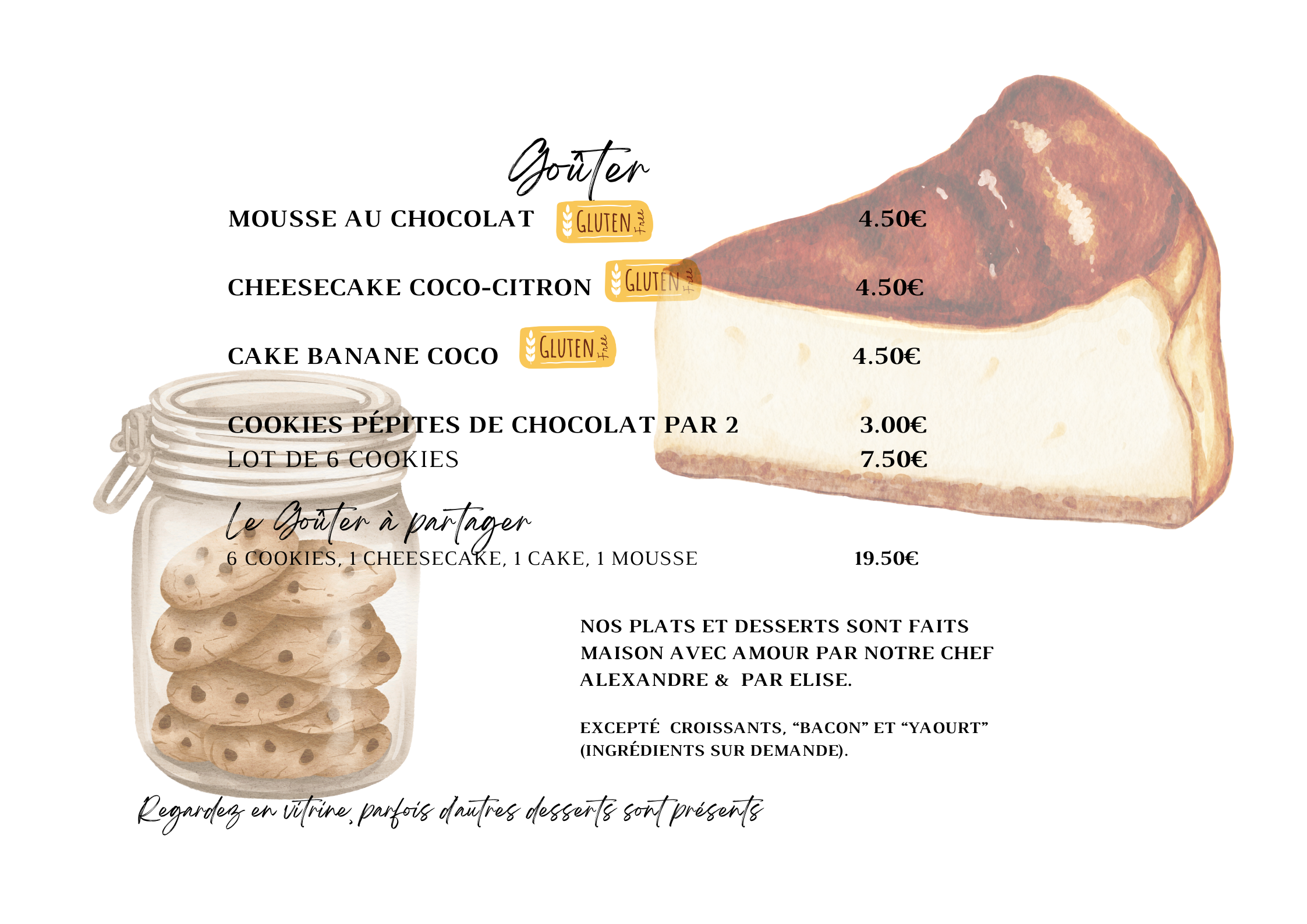Parce que nous souhaitons éviter le gaspillage et qu’on aime partager, certains plats sont proposés en demi portion, ou sous forme d’assiettes à partager.